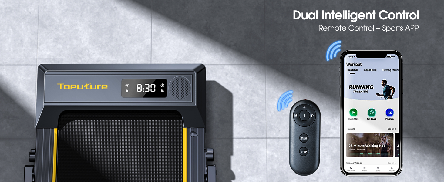 • 2 In 1 Home Folding Treadmill, Dual LED Screen, 2.5HP Silent Treadmill, 16KM/H, Bluetooth Speaker, Heart Rate, 12 Modes, App and Wireless Remote Control