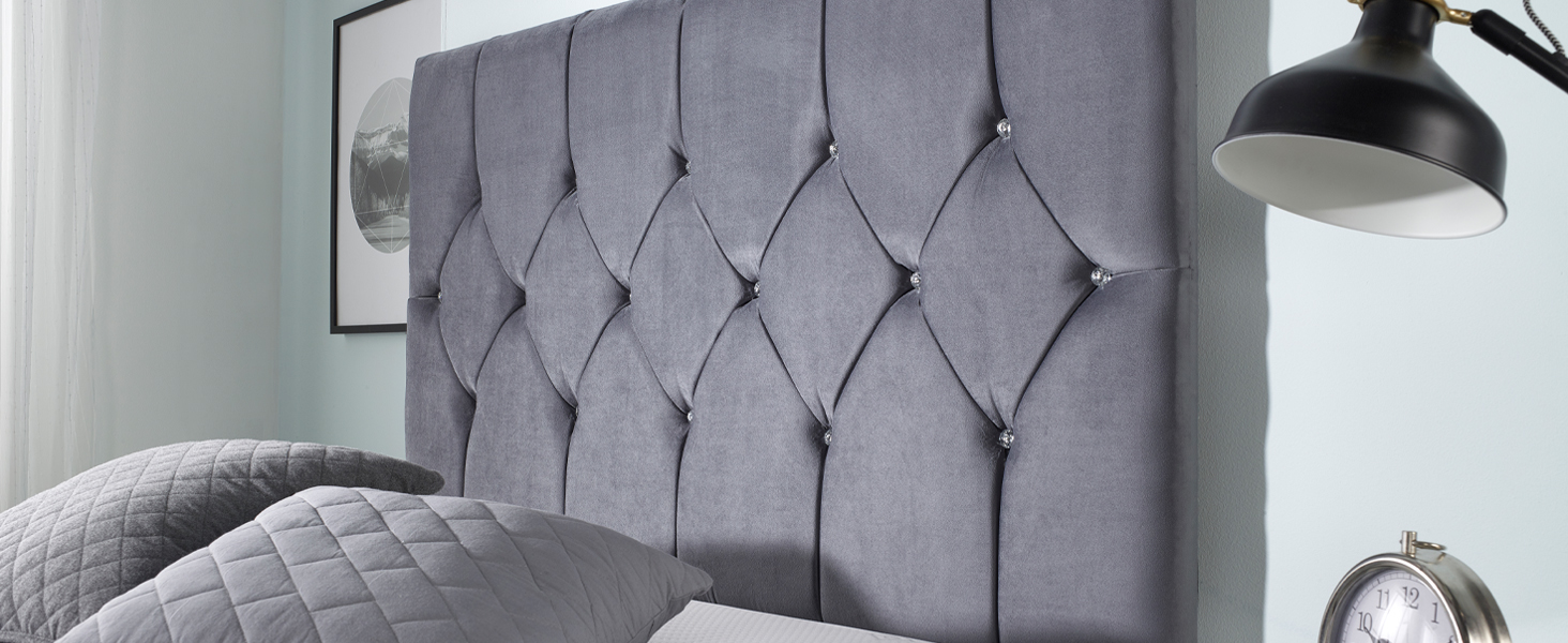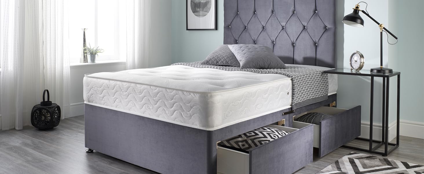 Bed Centre 4FT6 Double Divan Bed Ziggy Grey Plush Memory Foam Divan Bed Set With Mattress, 2 Drawers (Same Side) and Headboard (Double (135cm X 190cm))
