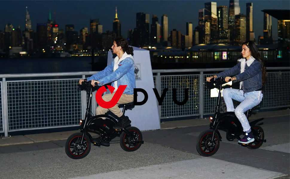DYU Folding Electric Bike, 14 inch Portable E-bike, Smart Electric Bicycle with Pedal Assist, 3 Riding Modes City EBike with Battery Indicator, Height Adjustable, Compact Portable, Unisex Adult