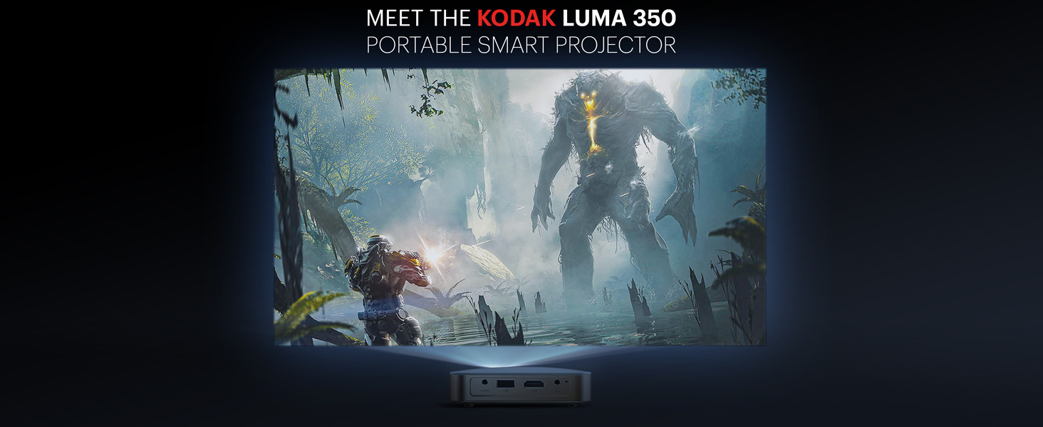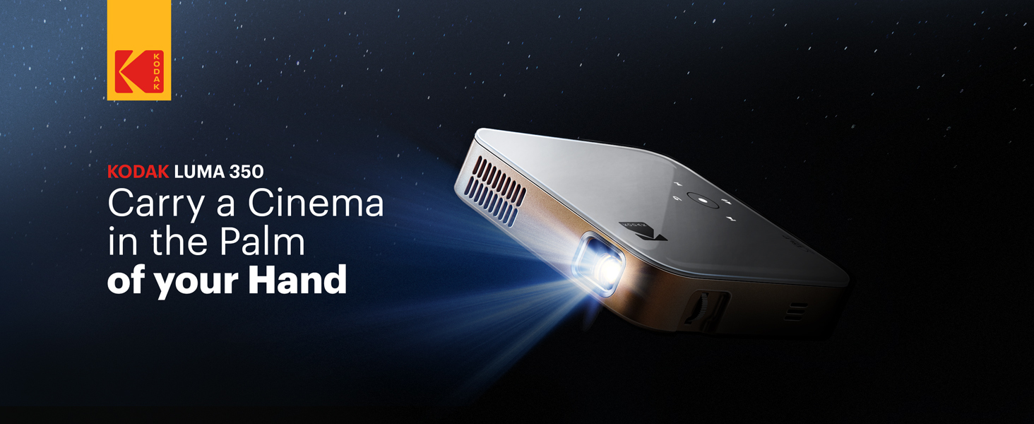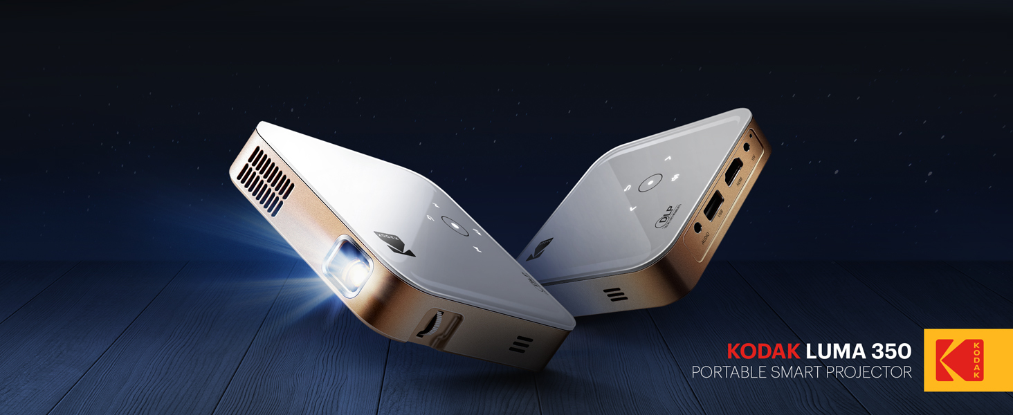 A: The KODAK LUMA 350 serves as your all-in-one portable cinema. Featuring Bluetooth and Wi-Fi connectivity as well as USB and HDMI inputs, it’s powered by Android. Download your favorite apps and stream your shows without ever touching your phone.
