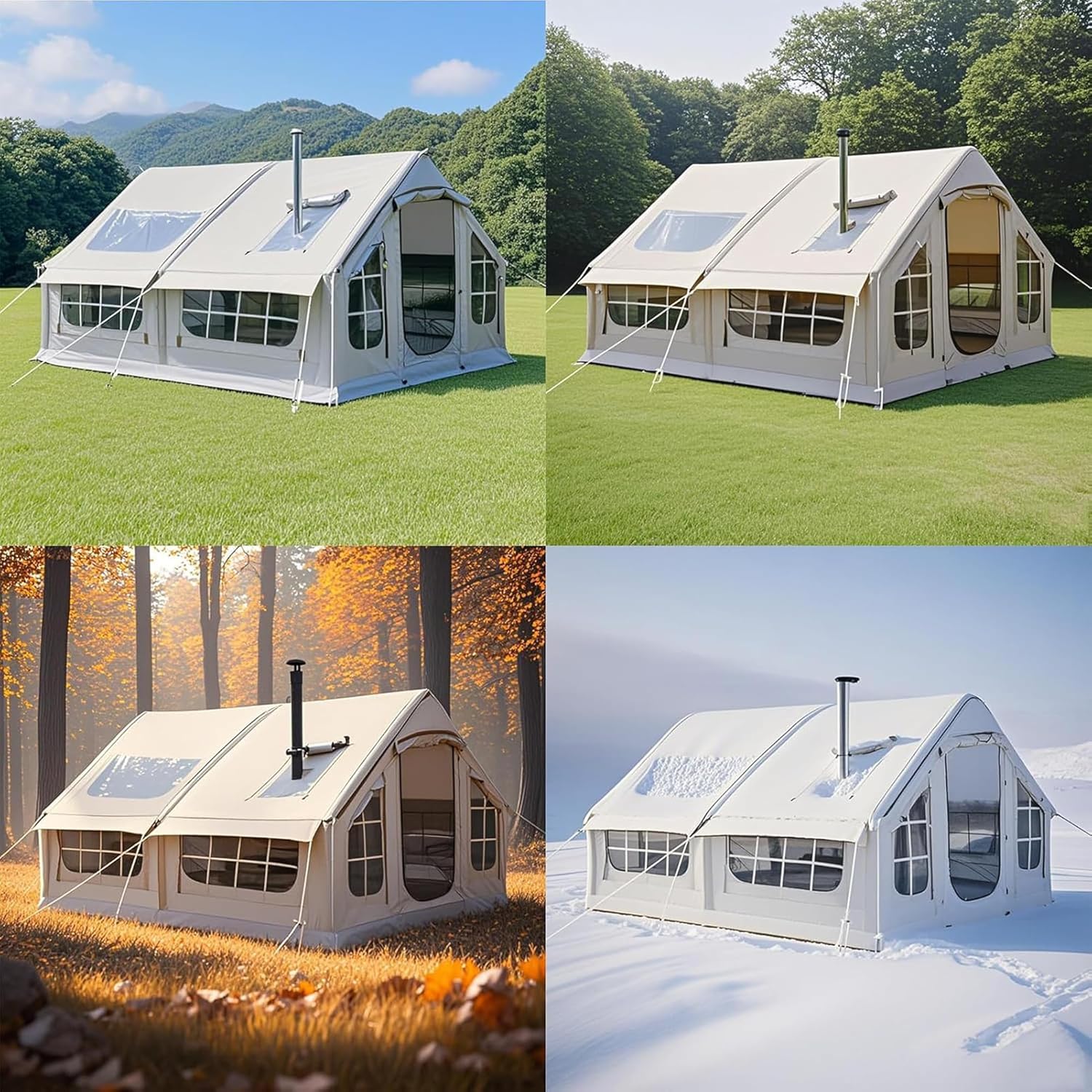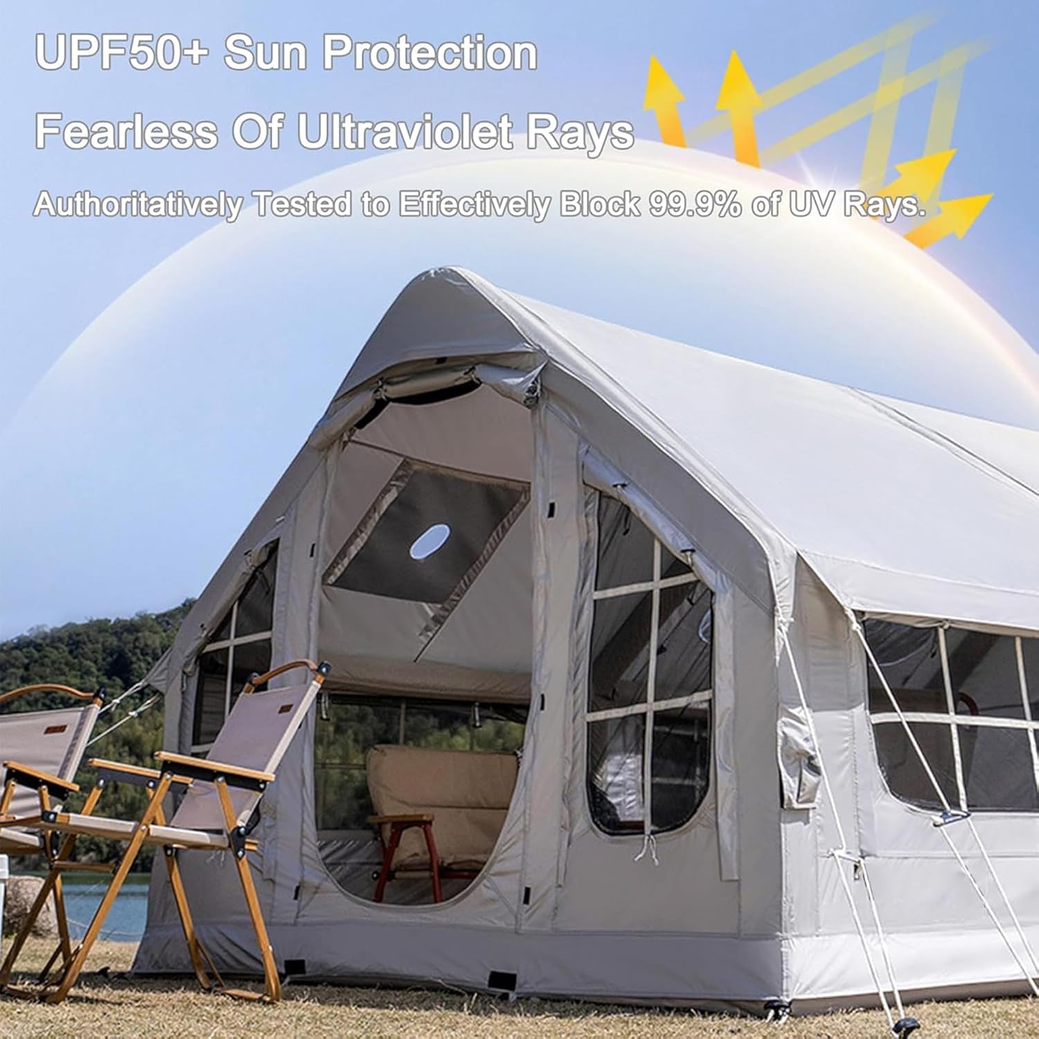 Inflatable Camping Tent, 8 Man Big Air Tent with Pump Large Family House Tent Mesh Windows & Stove Jack, PU3000+ / PU2000+ Waterproof Glamping 4 Season Tents, Blow Up Tents, Quick Build