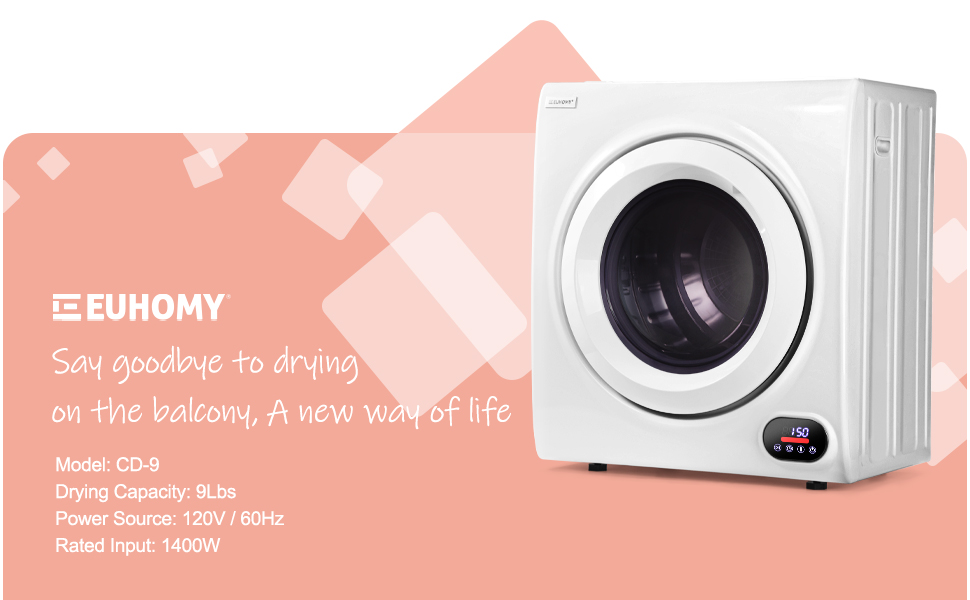【High performance】This is powerful yet compact clothes dryer machine, euhomy portable dryer has a large capacity of 14.5 pounds(wet clothes). This dryer with 1400W power, It can reach a maximum temperature of 140°F, To ensure that your clothes dry quickly. Note: Use after spin-drying, the drying effect is better.